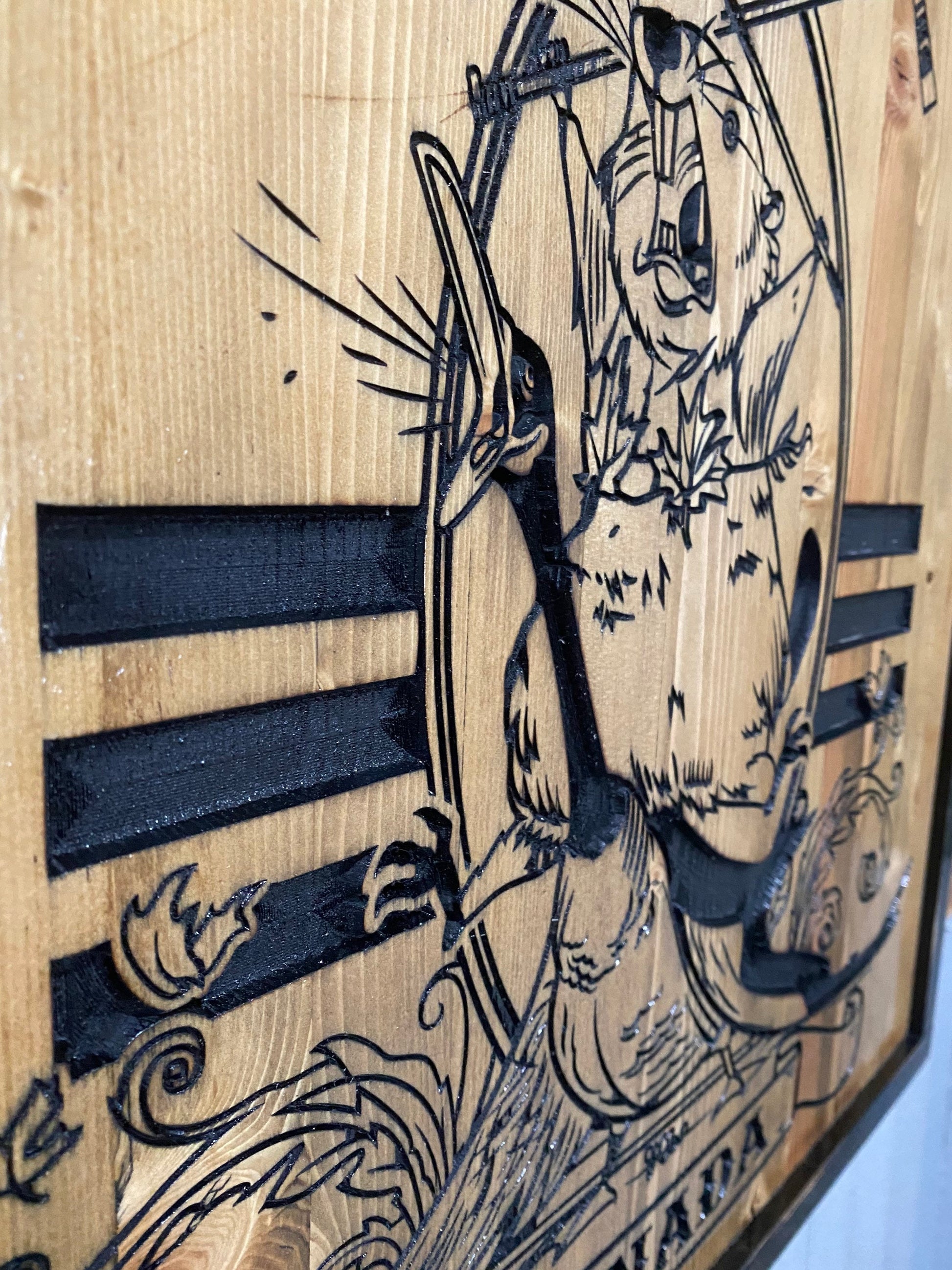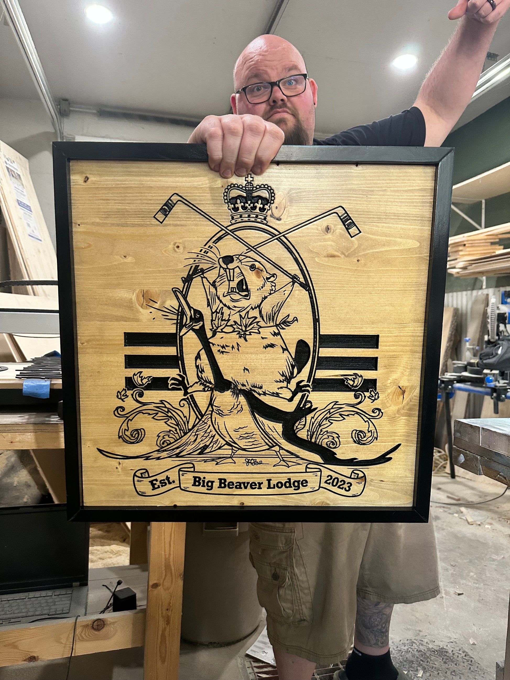 This is a 20”x20” carved wood sign. This design definitely screams Canada.This sign comes ready to hand with the hangers attached to the back already.