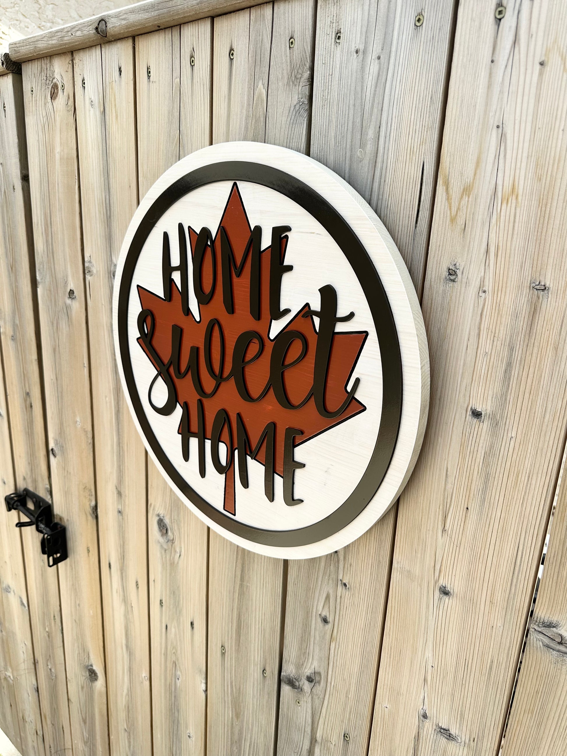 This 19” home sweet home sign is made by a Canadian for Canadians. I felt like making something you can show your pride for your house as well as your country.